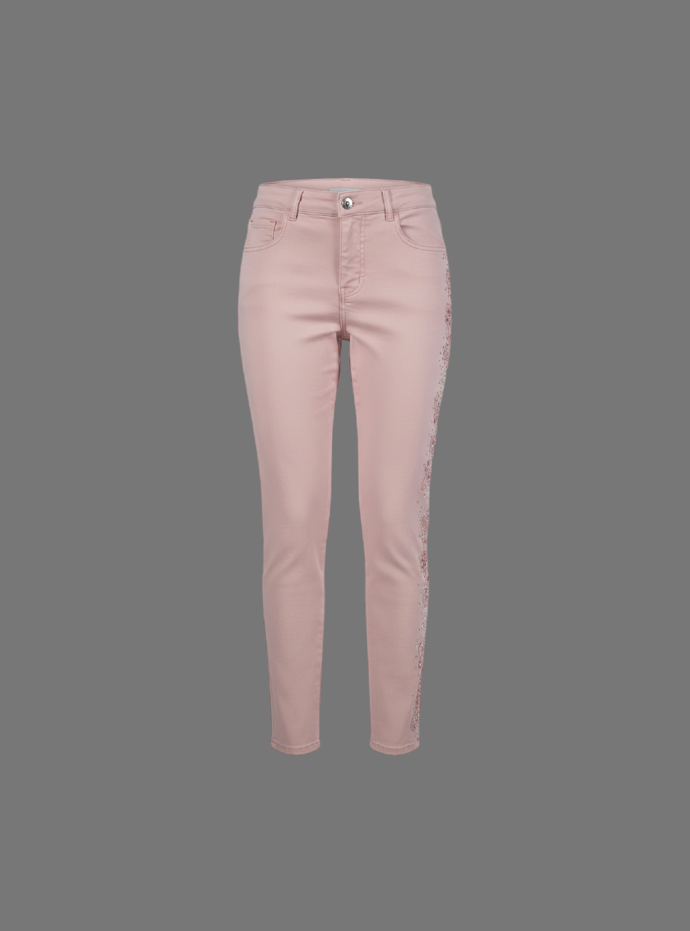 Embellishment- Embroidered vertical floral embroidery running down the outer side of the legs
