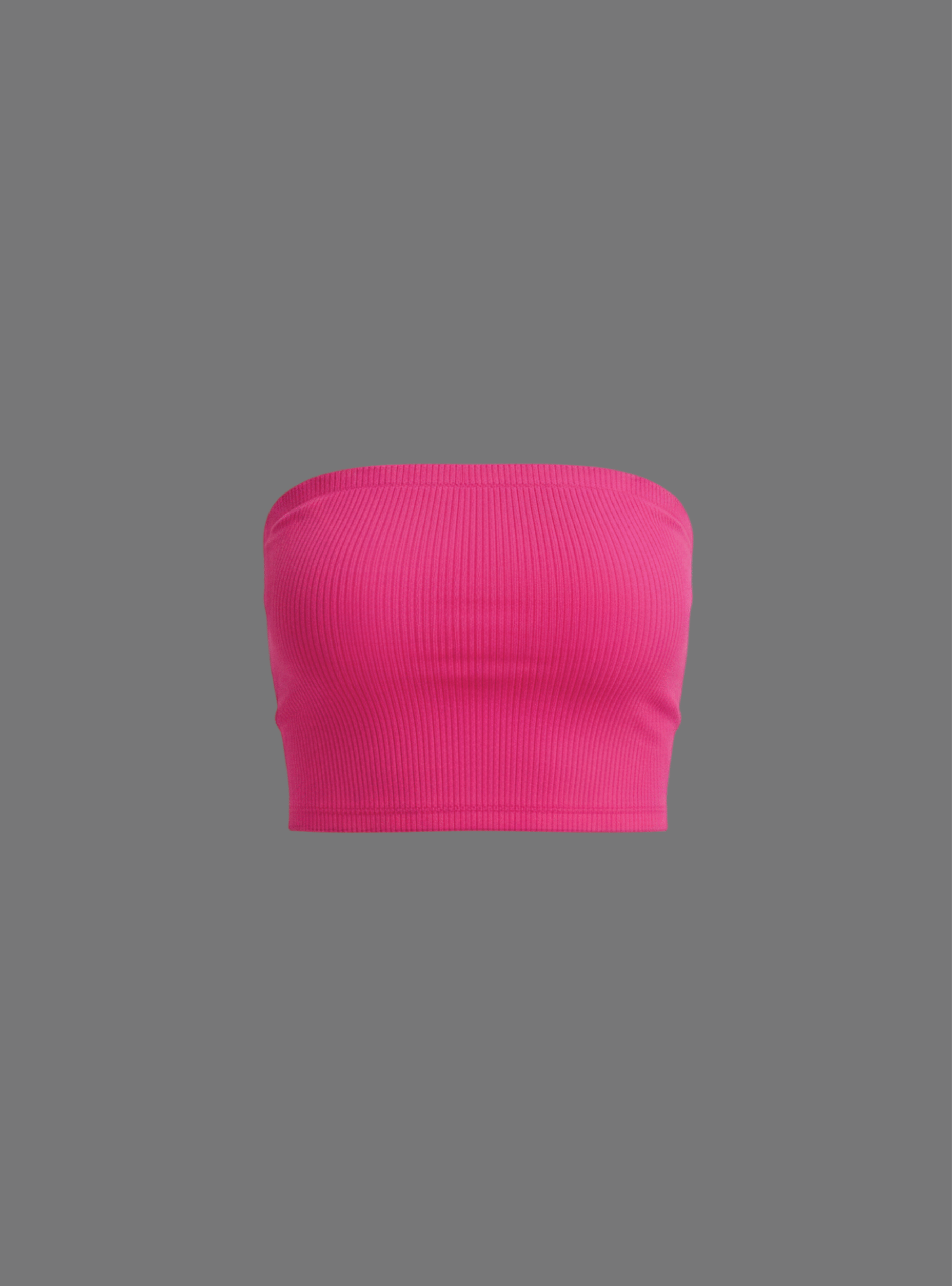 This is a fuchsia seamless cropped tube top.